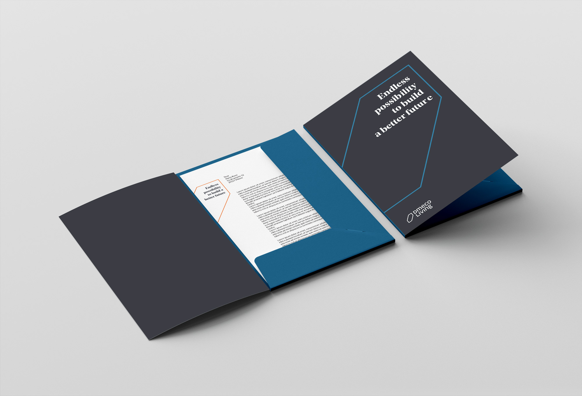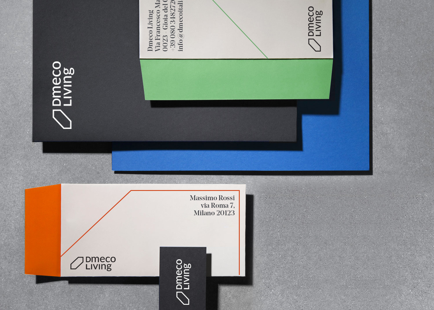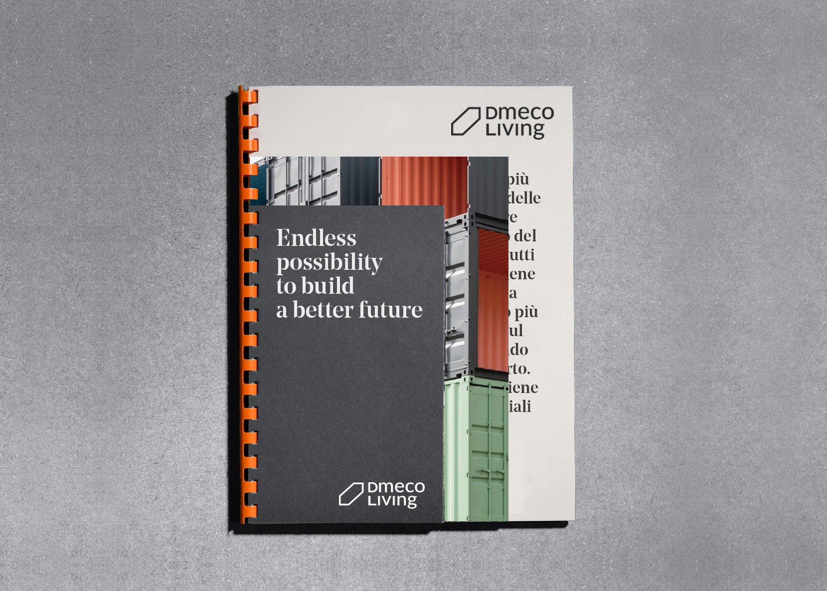 Per DmecoLiving, azienda che rigenera container navali e sviluppa nuove soluzioni abitative modulari, ecologiche ed economiche, dal design e la forma personalizzabile, abbiamo creato una nuova identità visiva declinata in diversi materiali di comunicazione cartacea.