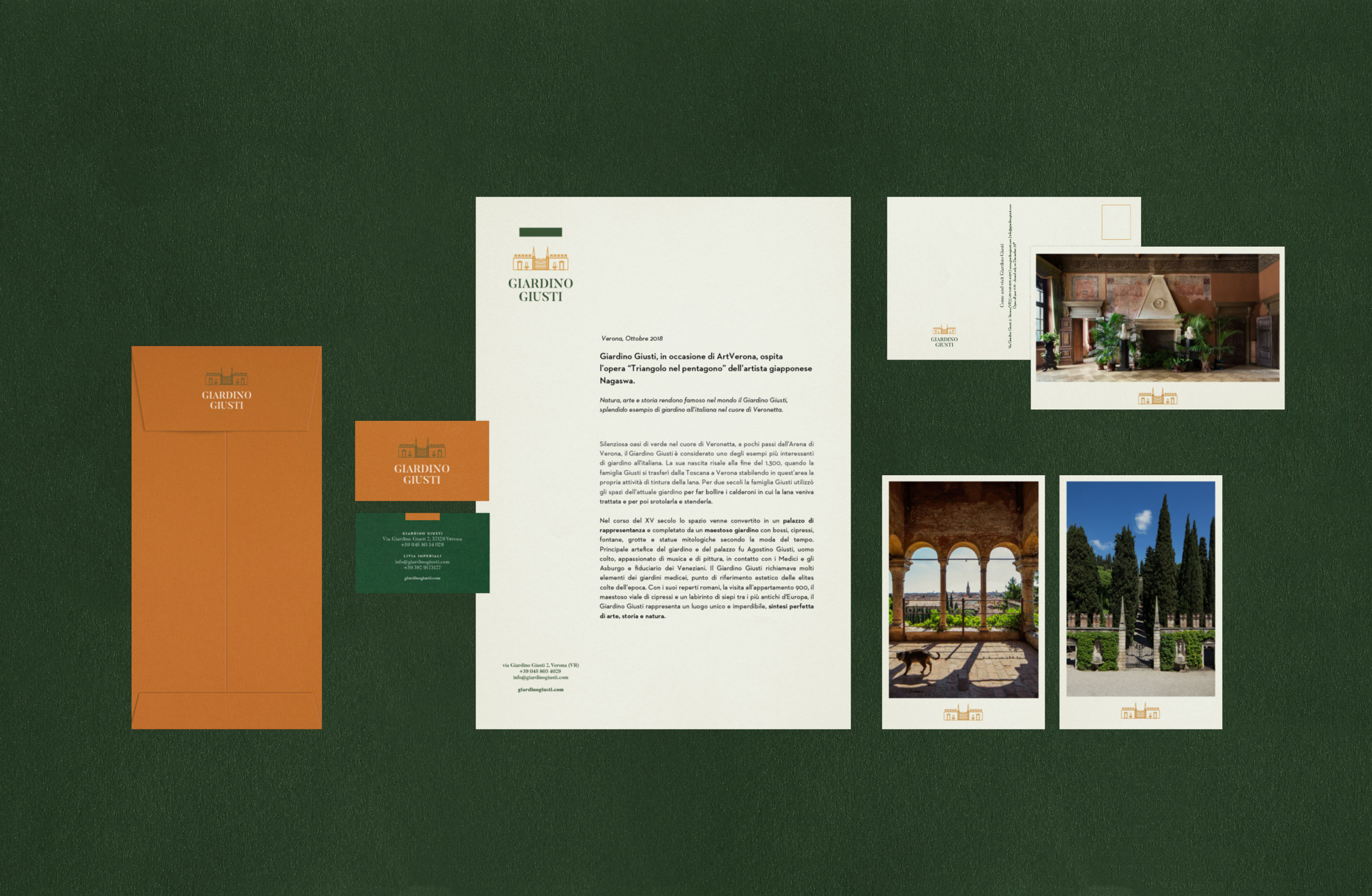 Giardino Giusti aveva una richiesta: elevare il suo percepito mantenendo saldo il suo rimando al passato. Abbiamo risposto con una nuova strategia di comunicazione, rivisitando l’identità visiva e raccontandola attraverso diversi canali: stationery, sistema brochure, segnaletica ambientale e presenza online.