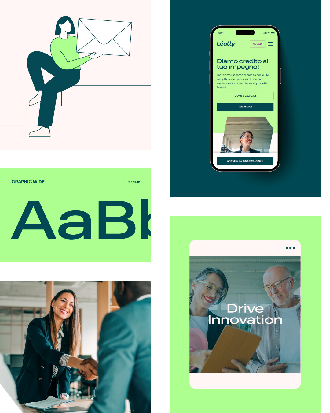 Léally, un servizio digitale e innovativo che semplifica i processi di accesso ai prodotti finanziari delle PMI, ci ha affidato lo sviluppo della sua identità. Attraverso un’attenta analisi del servizio e del mercato di riferimento, abbiamo sviluppato un’identità contemporanea e affidabile, in linea con la natura digitale e innovativa della piattaforma. Dal linguaggio visivo alla user interface, ogni elemento è stato progettato per comunicare al meglio i valori di Léally, quali affidabilità, innovazione, intuitività ed efficacia.