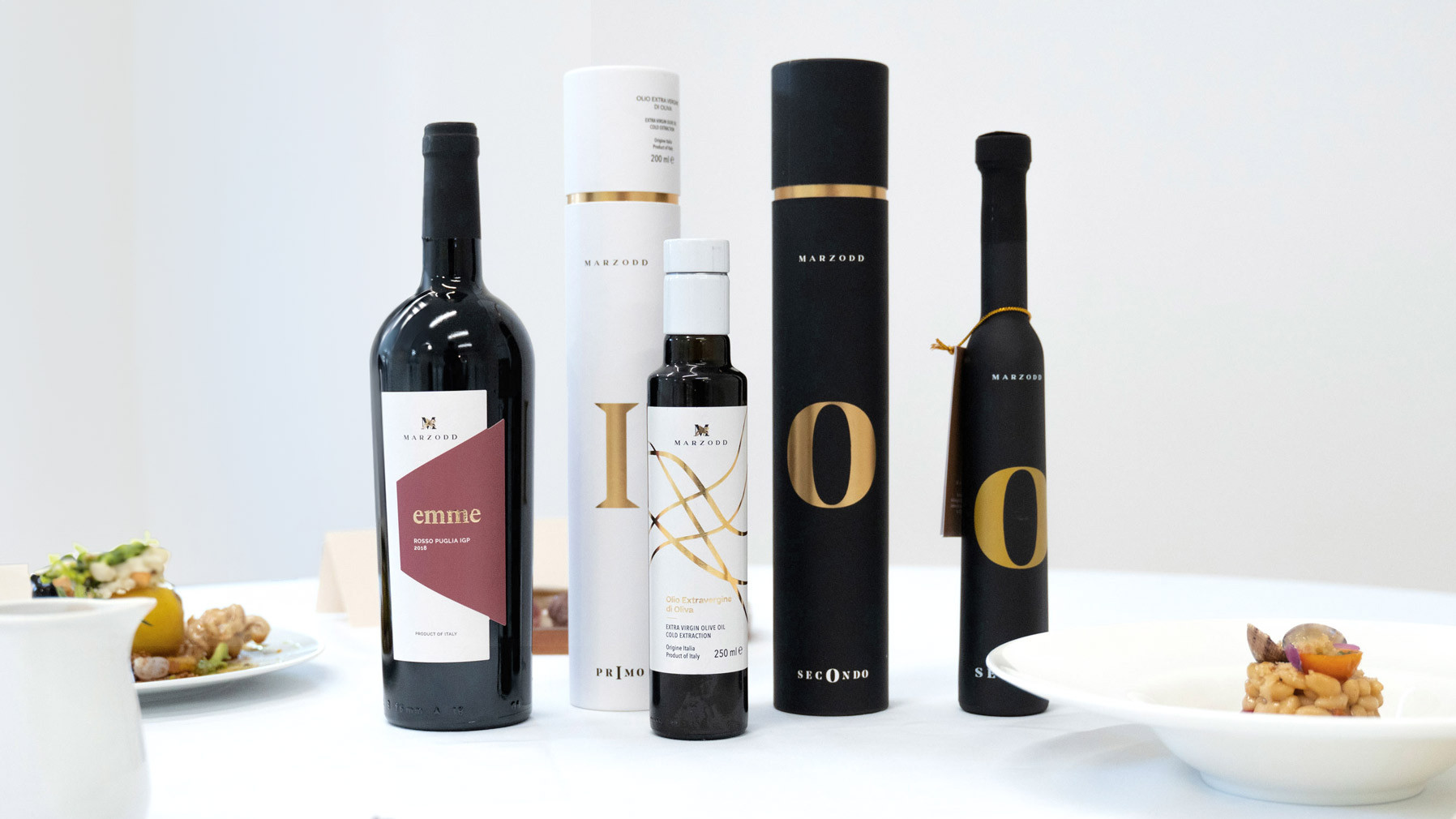 Un design pulito ed essenziale dove il bianco e nero viene impreziosito dalla lamina oro. La grafica è minimale ma nella sua semplicità nasconde un significato: estraendo la lettera centrale di Primo e Secondo dove la I di primo simboleggia il tronco dell’ulivo e la O di Secondo simboleggia l’oliva.
