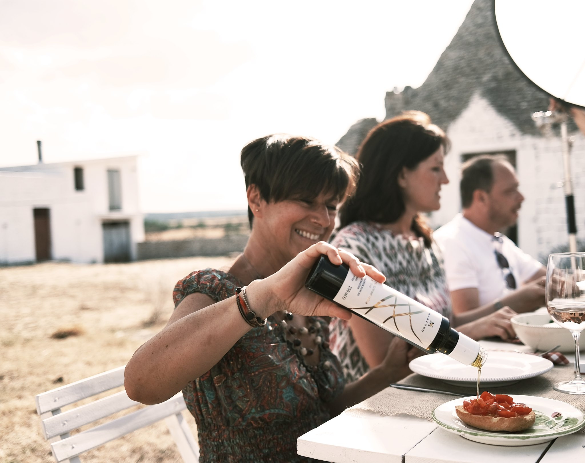 L’idea nasce dalla volontà di proporre un olio elegante, raffinato e di design che potesse anche arredare la tavola e la cucina, un olio da esporre. Da qui la scelta di una bottiglia distintiva, dalla forma stretta ed allungata, non il classico contenitore per l’olio ma una bottiglia che nasce per i distillati, protetta da un cofanetto circolare che la avvolge.