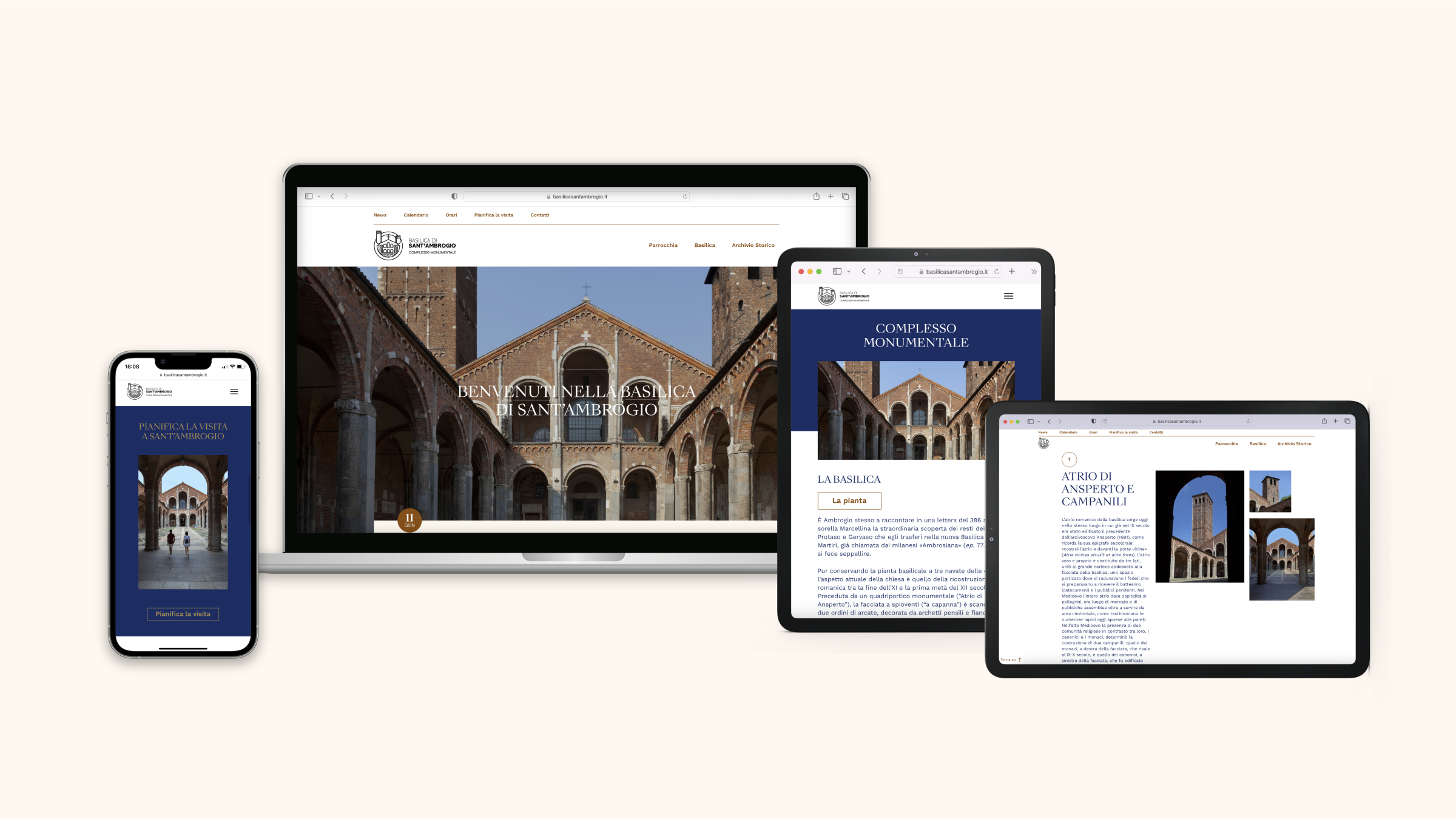 Abbiamo disegnato e sviluppato il sitoweb per la Basilica di Sant'Ambrogio, una delle più antiche chiese di Milano, simbolo della città. Il progetto vuole soddisfare i bisogni dei visitatori: dai fedeli ai turisti.