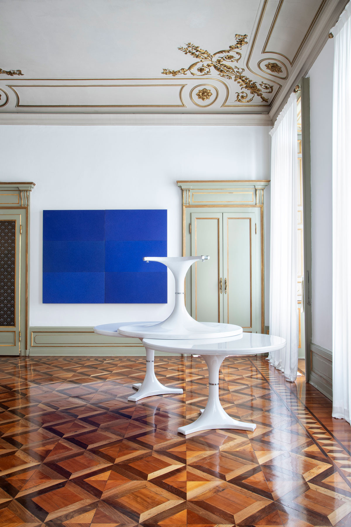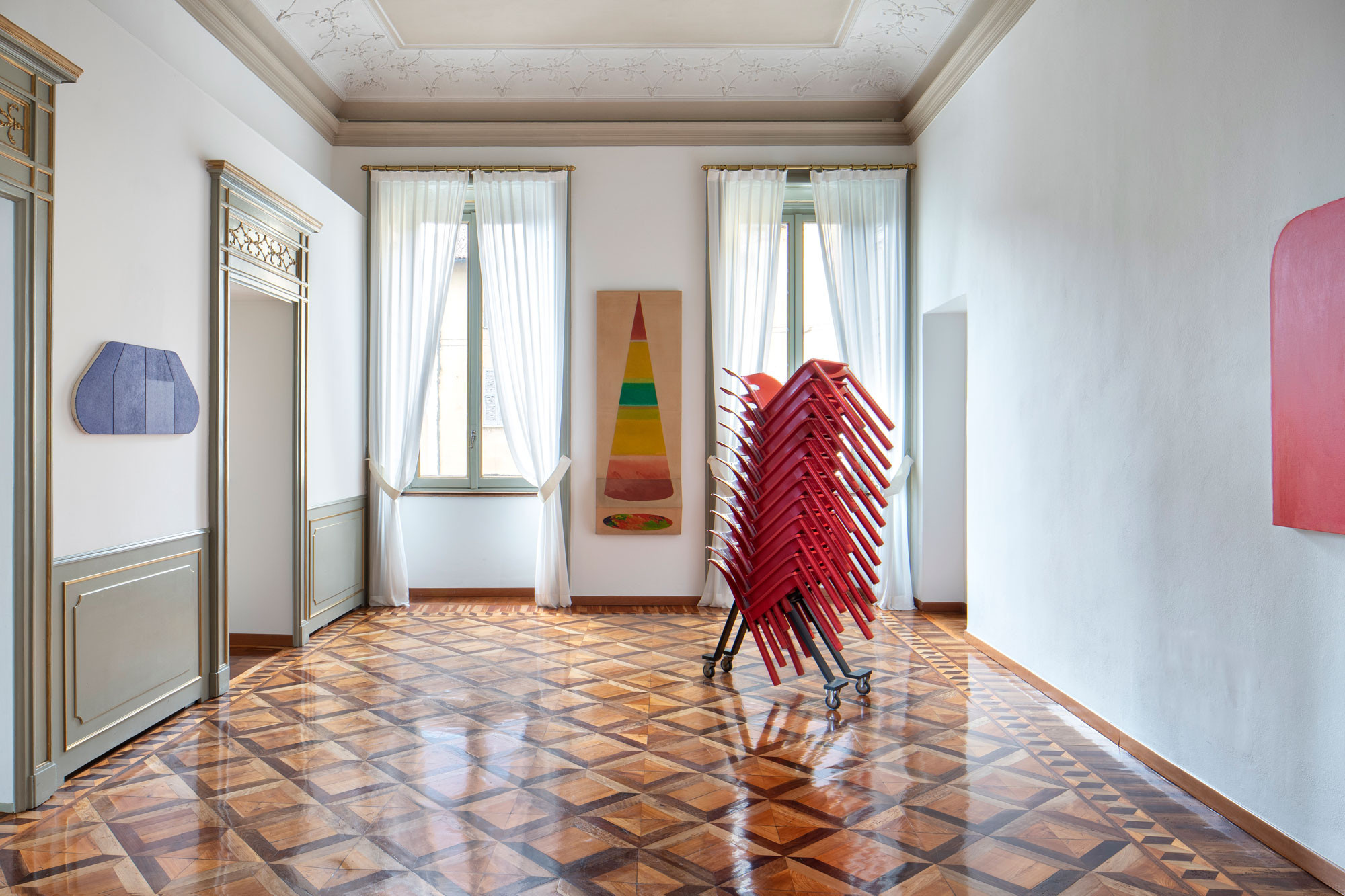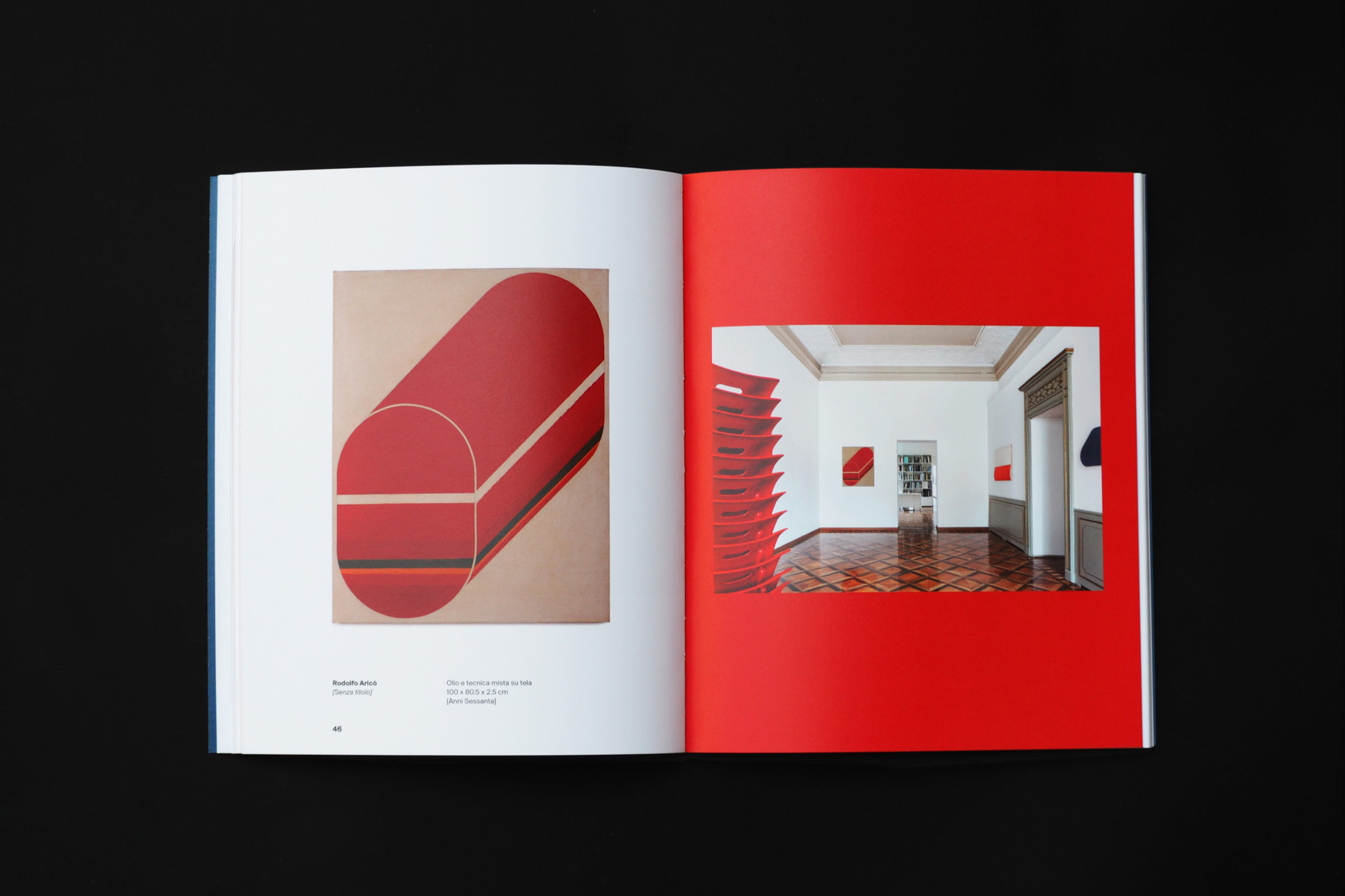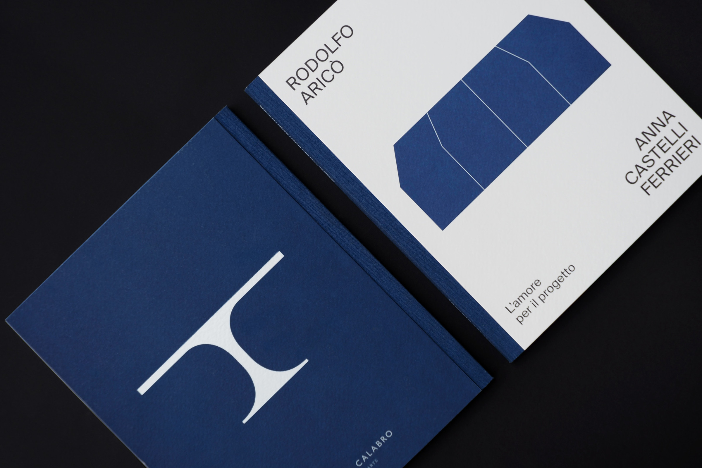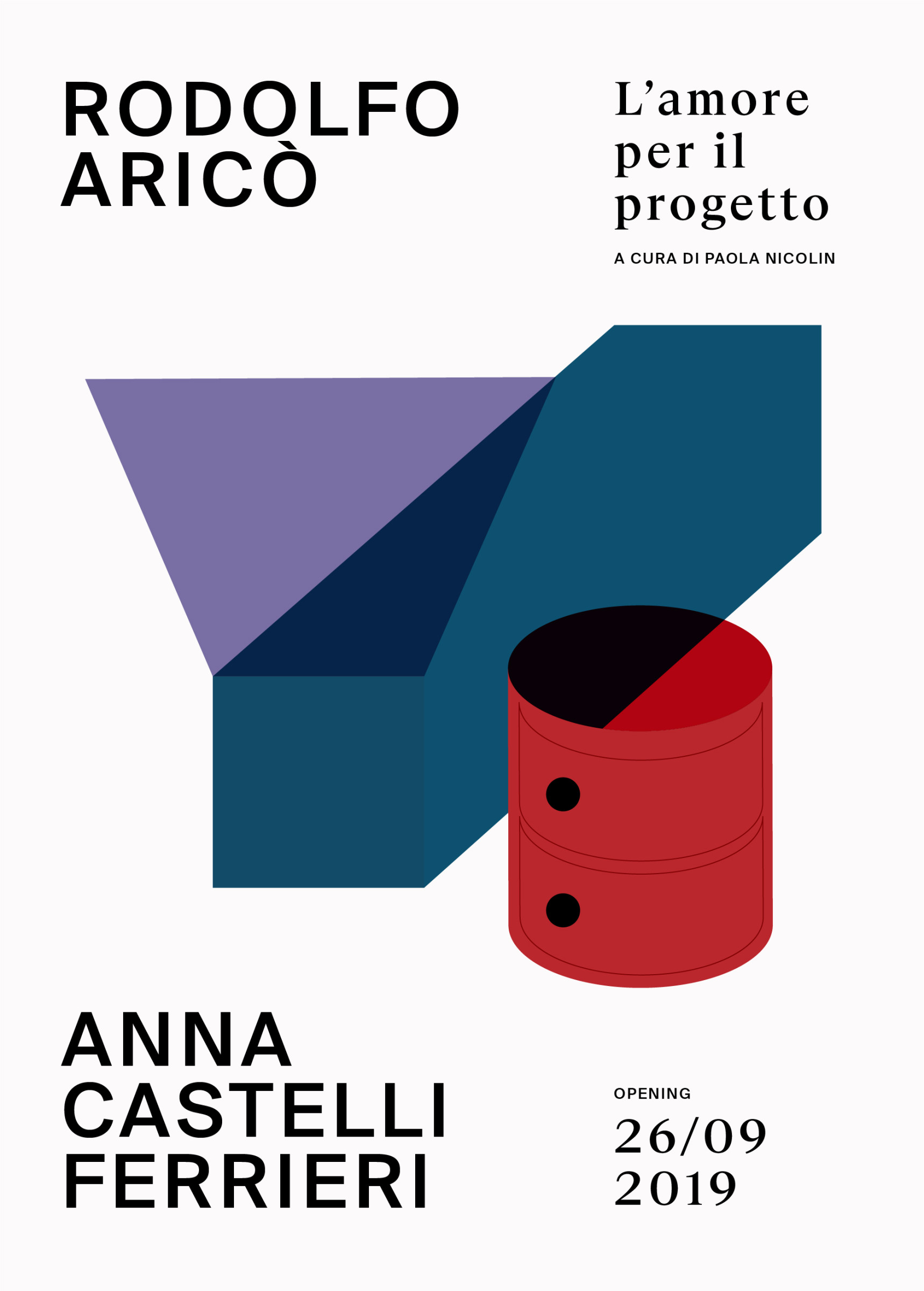 La mostra Rodolfo Aricò / Anna Castelli Ferrieri. L'Amore per il progetto, allestita nella galleria d'arte Tommaso Calabro presenta due protagonisti del secondo Novecento italiano, accomunati da un’attenzione puntuale alla fase di progettazione delle proprie opere. Per comunicare la mostra abbiamo progettato due inviti le cui illustrazioni intrecciano le opere iconiche dei due progettisti. Il catalogo di accompagnamento invece è caratterizzato da una copertina il cui scopo è quello di ricordare attraverso il tatto la texture delle tele di Aricò in contrapposizione all’effetto liscio e lucido degli oggetti di plastica della Castelli.