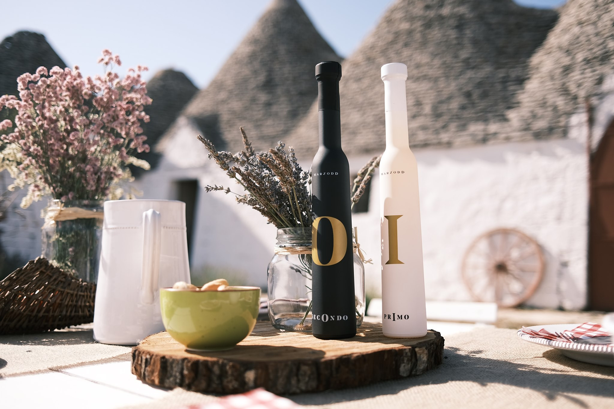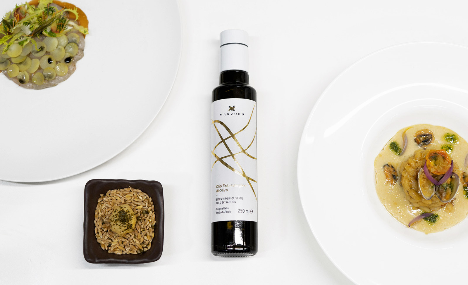 L’idea nasce dalla volontà di proporre un olio elegante, raffinato e di design che potesse anche arredare la tavola e la cucina, un olio da esporre. Da qui la scelta di una bottiglia distintiva, dalla forma stretta ed allungata, non il classico contenitore per l’olio ma una bottiglia che nasce per i distillati, protetta da un cofanetto circolare che la avvolge.