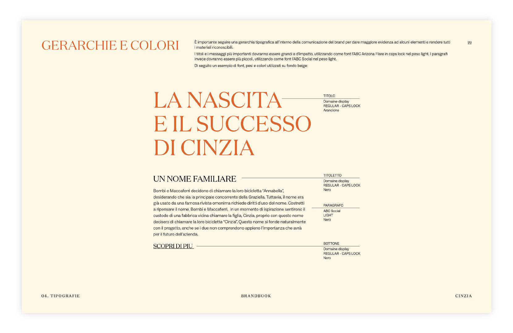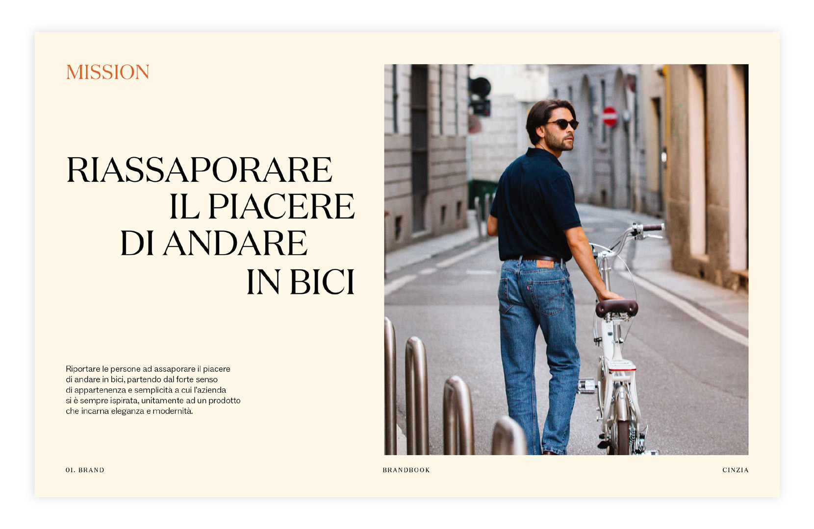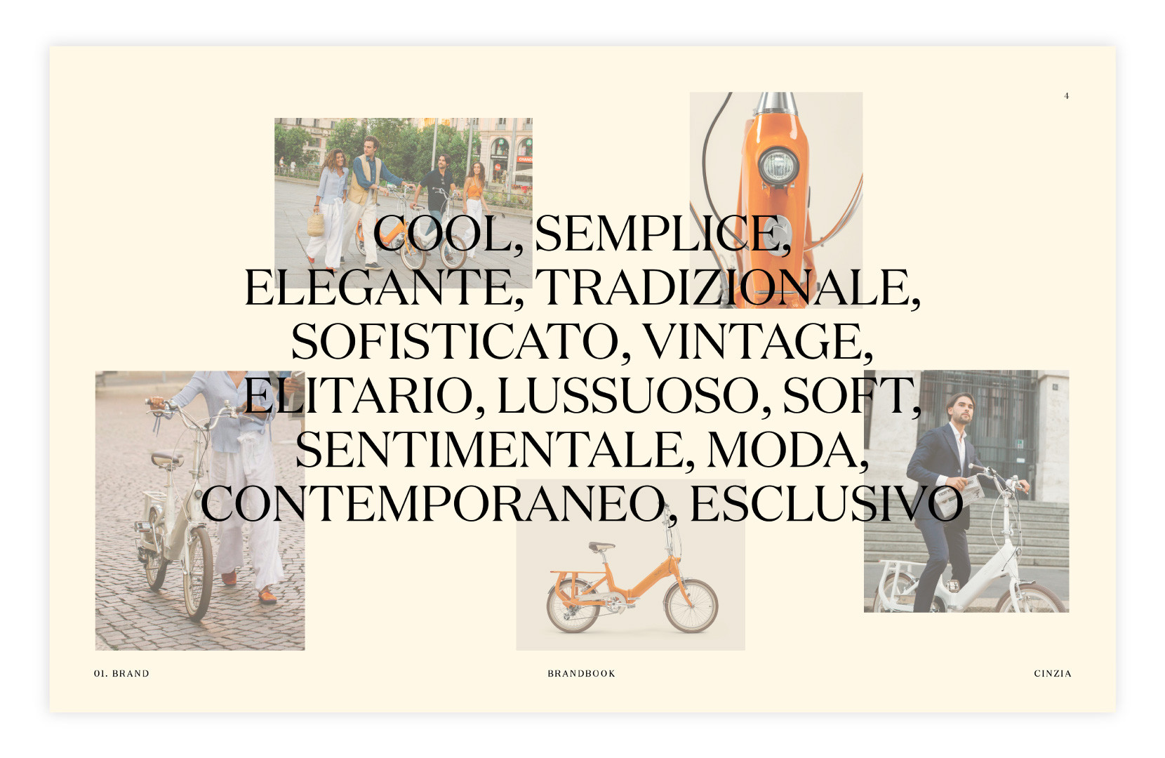 Il rebranding di Cinzia, storico brand di biciclette, celebra il suo spirito contemporaneo e innovativo senza perdere il legame con la tradizione e la storia che l'hanno resa un’icona. Lo stile classico si unisce ad un’estetica moderna e cool, dando vita a un’identità sofisticata e senza tempo. Attraverso un linguaggio visivo distintivo e una cura meticolosa dei dettagli, Cinzia racconta un’esperienza esclusiva, dove la bicicletta diventa espressione di lusso discreto e di un lifestyle sofisticato.