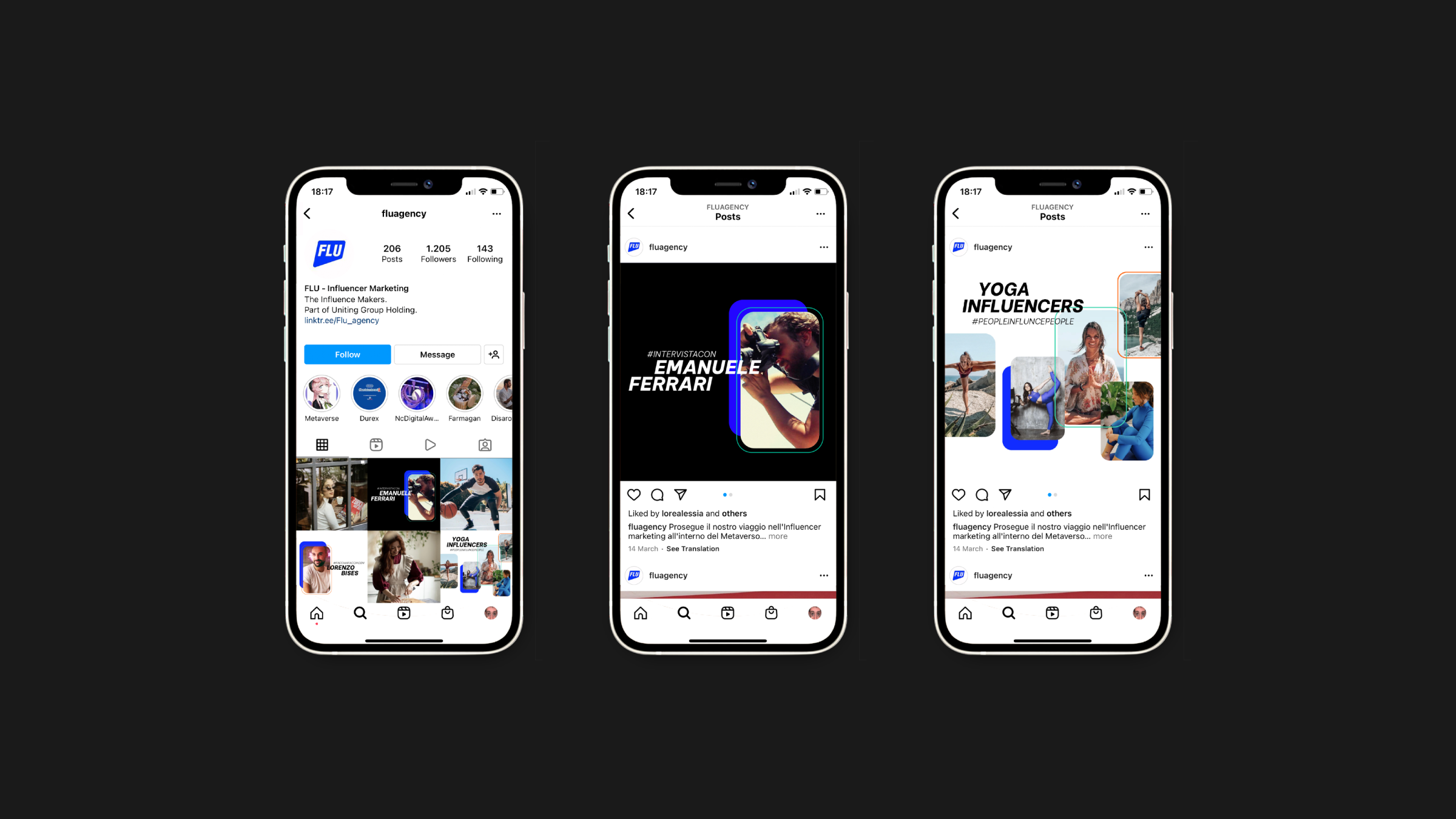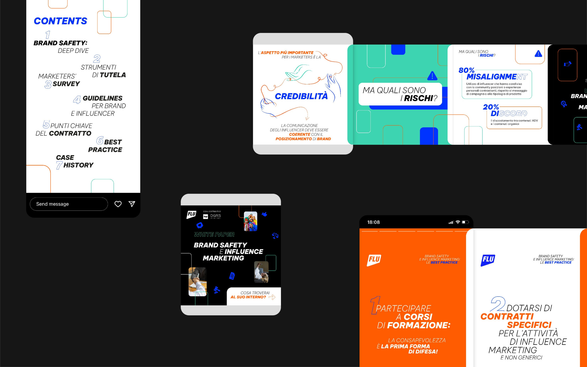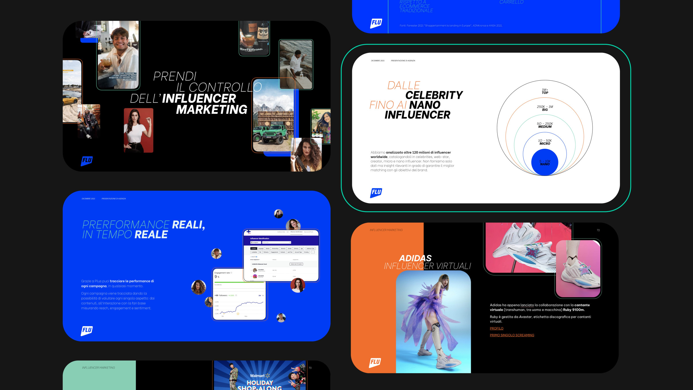 Flu agency mira ad essere una realtà di riferimento per creare e veicolare campagne e contenuti creativi di influencer marketing in grado di rendere efficace la connessione tra brand e creator. Ci ha chiesto di creare un'identità giovane, fresca, dinamica capace di strizzare l'occhio al mondo digital e dei social media.
