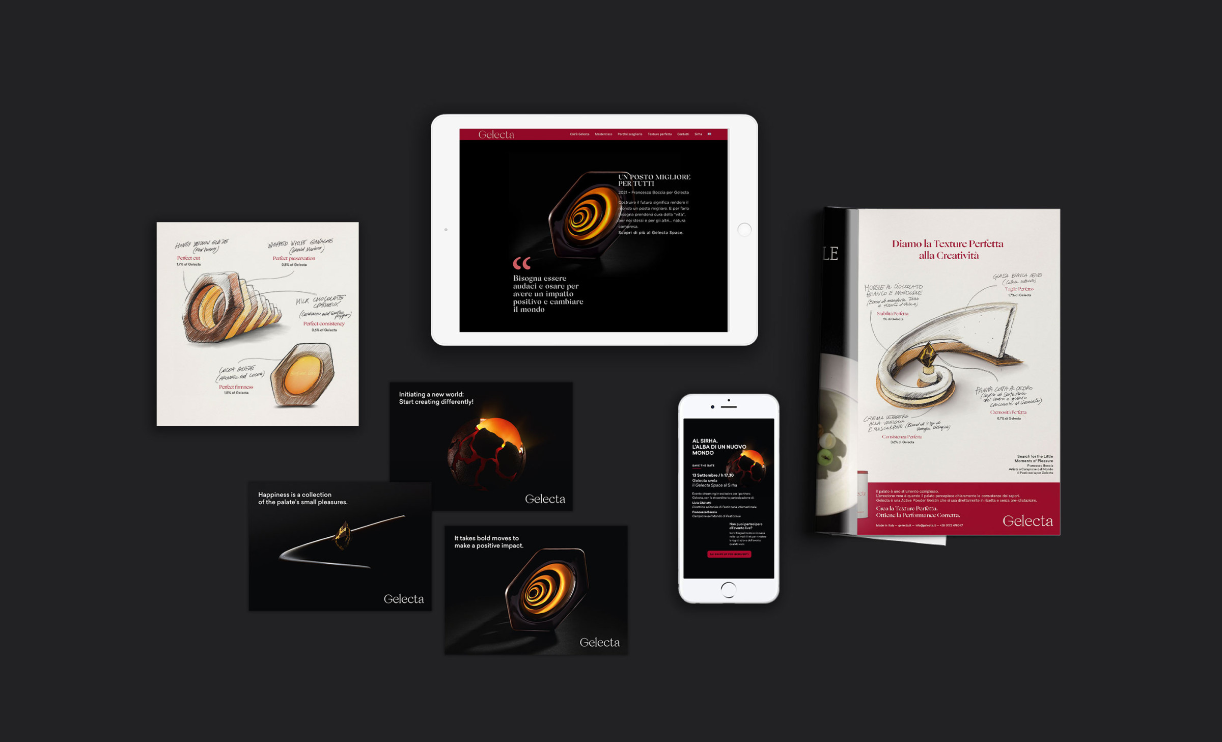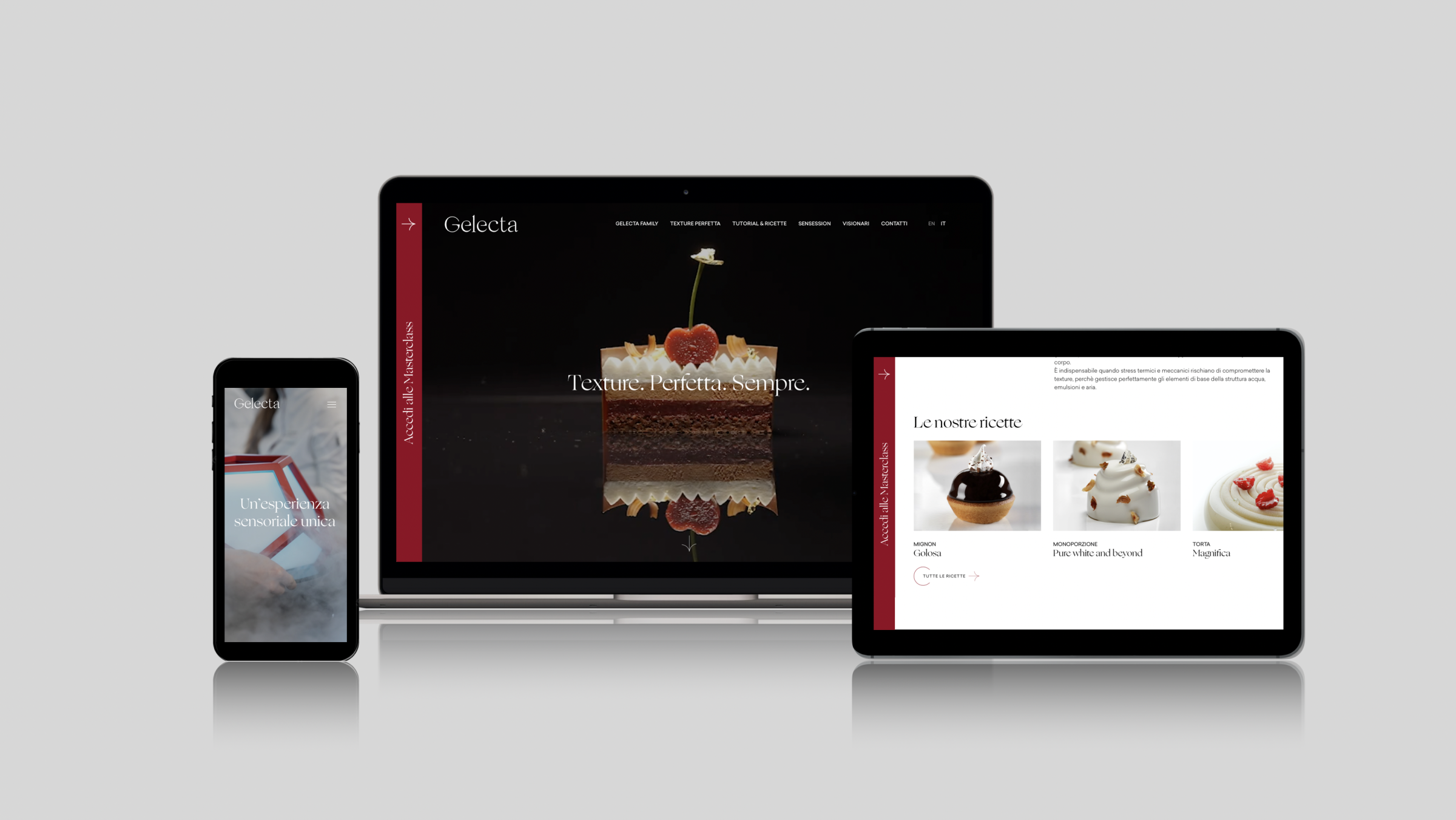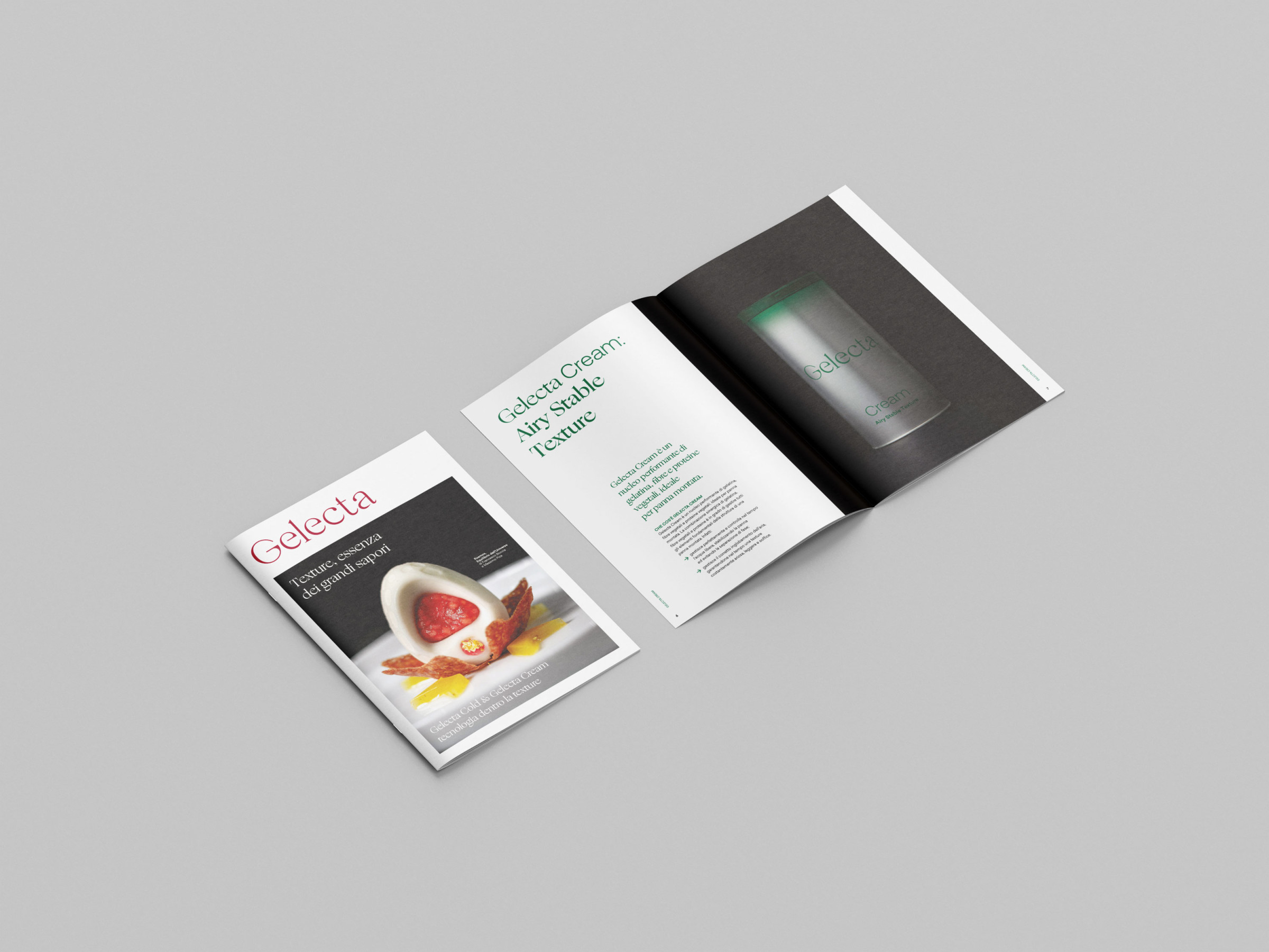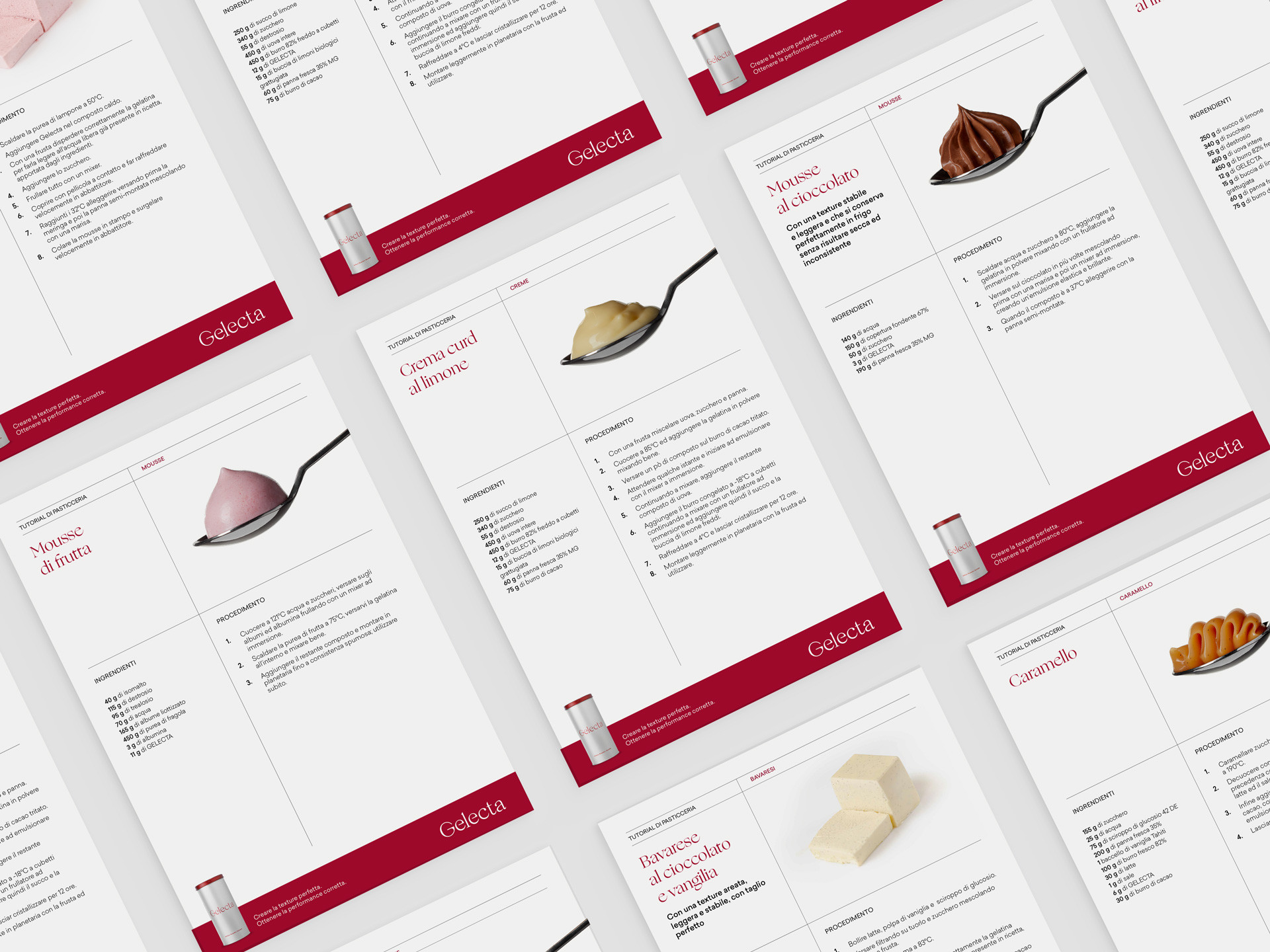 Dal 2021, ci siamo dedicati alla gestione della comunicazione visiva di Gelecta, un brand specializzato in gelatina istantanea ideata per pastry chef di alta pasticceria.