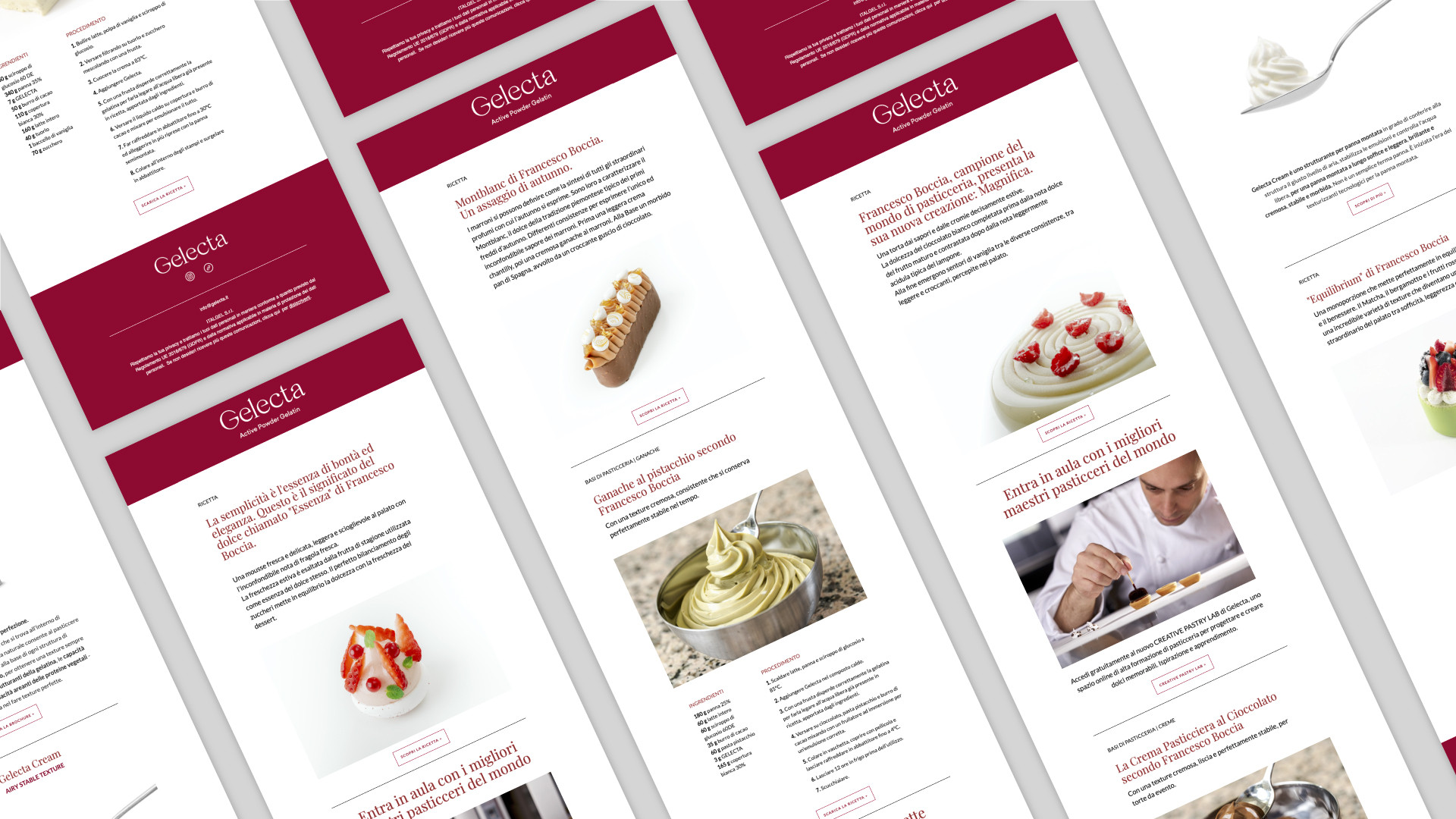 La nostra collaborazione con Gelecta ha inizio con la gestione delle attività visive quotidiane e prosegue attraverso progetti di branding più ampi e complessi. Questi includono la partecipazione al Sirha, lo sviluppo di un sito web che funge da ricca biblioteca online di ricette, nonché la supervisione dell'intera strategia di marketing digitale e fisica, legata agli eventi, su cui il brand ha puntato.