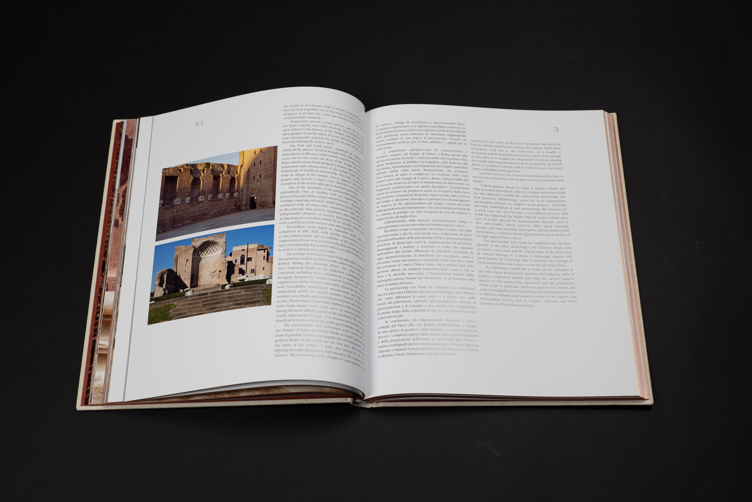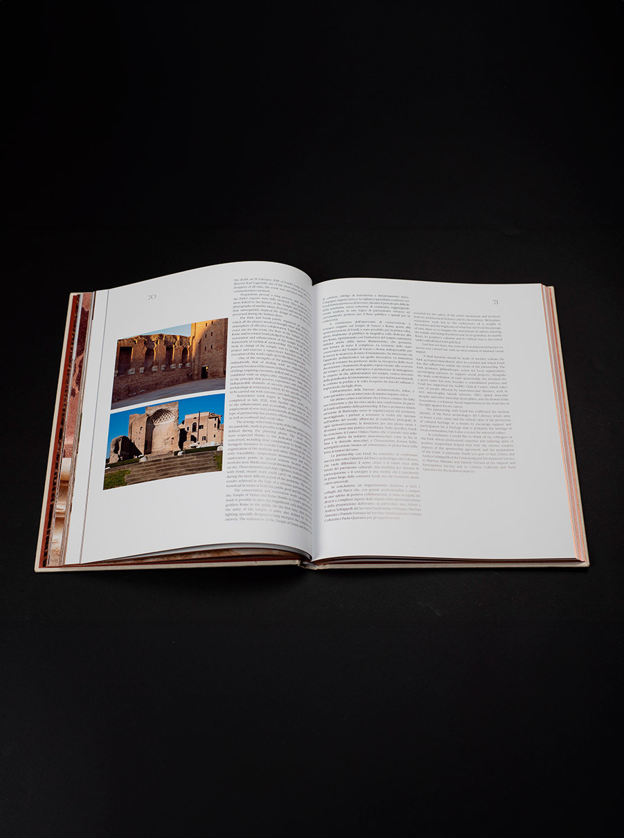 Concept e dello sviluppo grafico del volume edito da Electa che celebra, con il Parco archeologico del Colosseo e FENDI, la restituzione alla collettività di uno dei monumenti più iconici dell’Impero Romano, dopo il completamento degli interventi di restauro e di valorizzazione del Tempio di Venere e Roma.