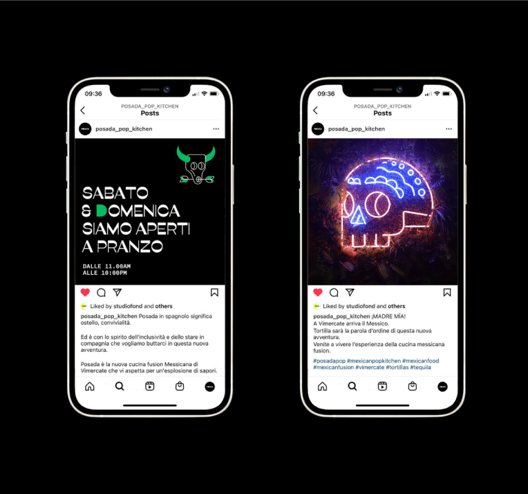 Posada è un ristorante che propone una cucina messicana rivisitata in chiave moderna. La sfida è stata quella di far parlare la cultura messicana con i suoi colori e le sue icone con la ricercatezza della cucina proposta. Il risultato è un'identità visiva moderna, fresca e cool che ben si adatta anche alla comunicazione digitale e social.