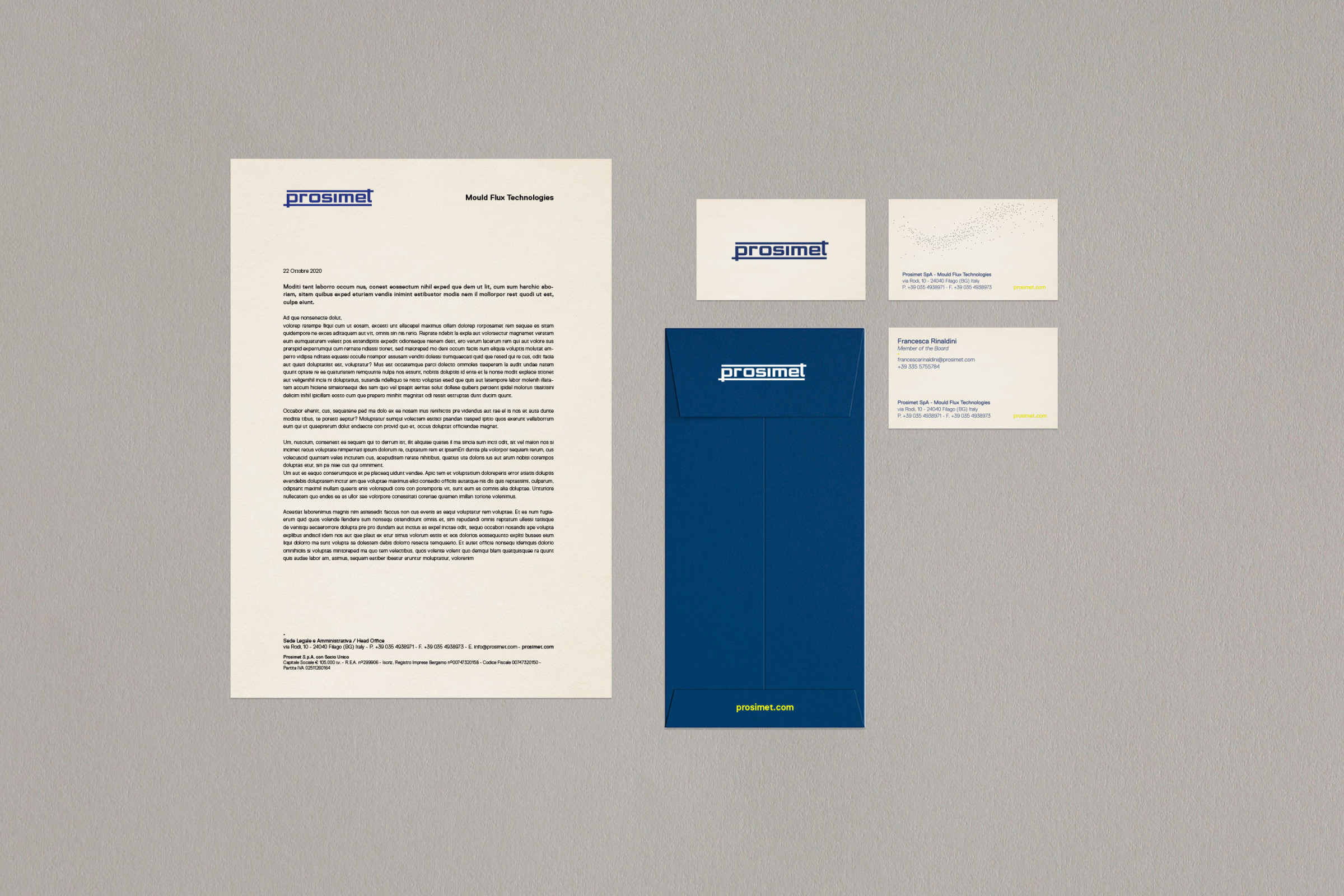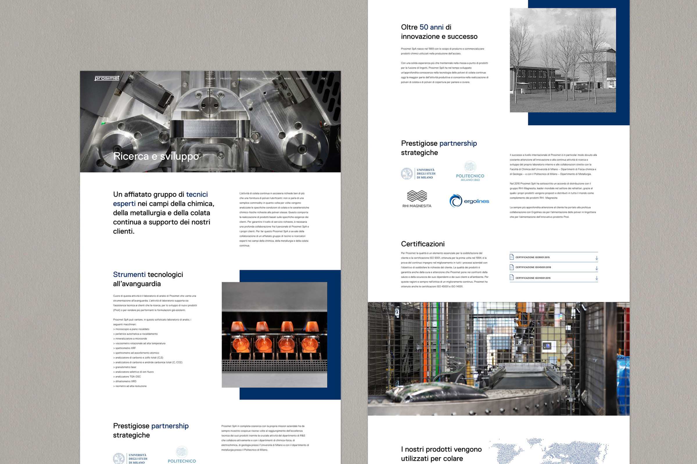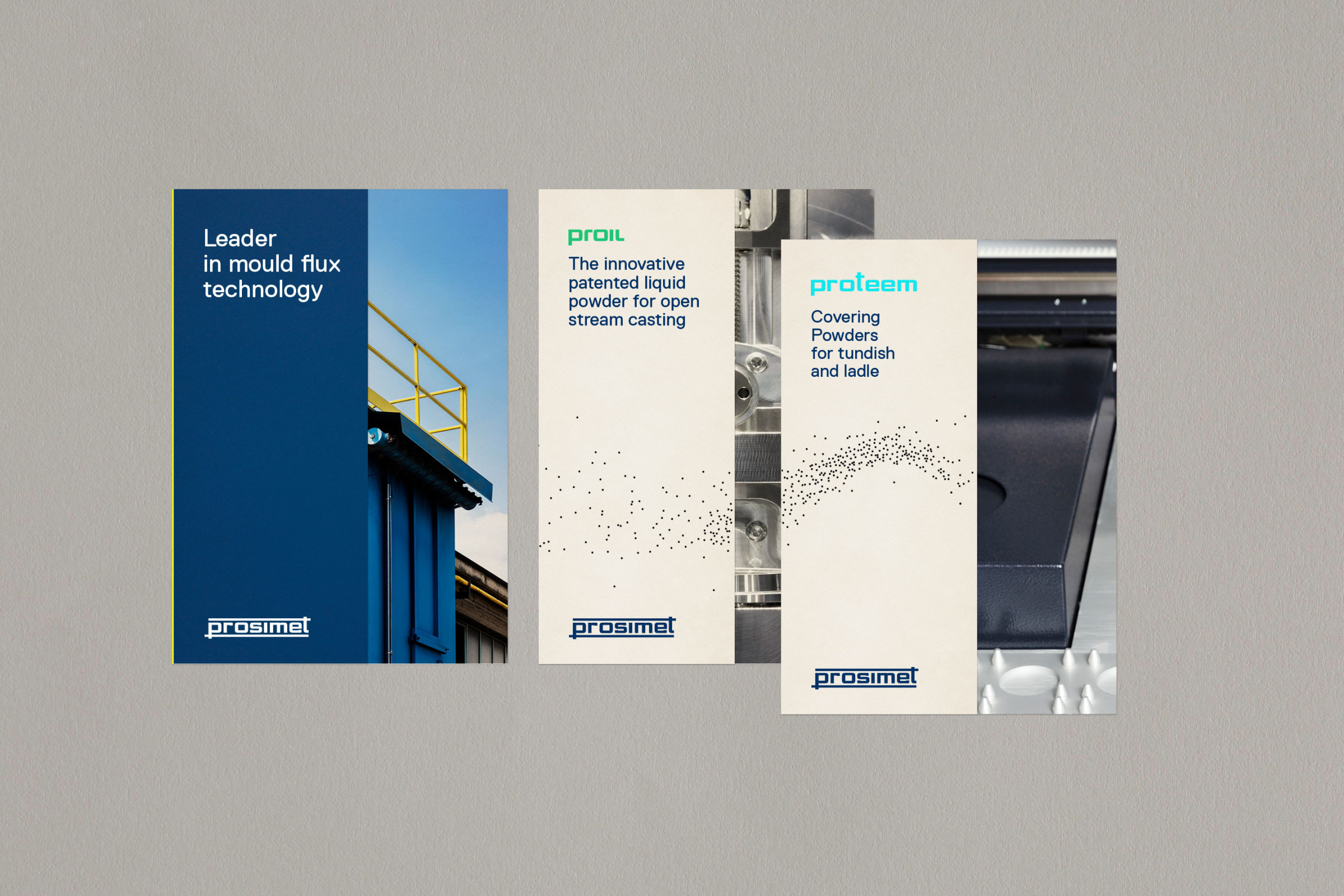 Un'identità visiva per Prosimet, azienda leader nella tecnologia delle polveri di colata continua.